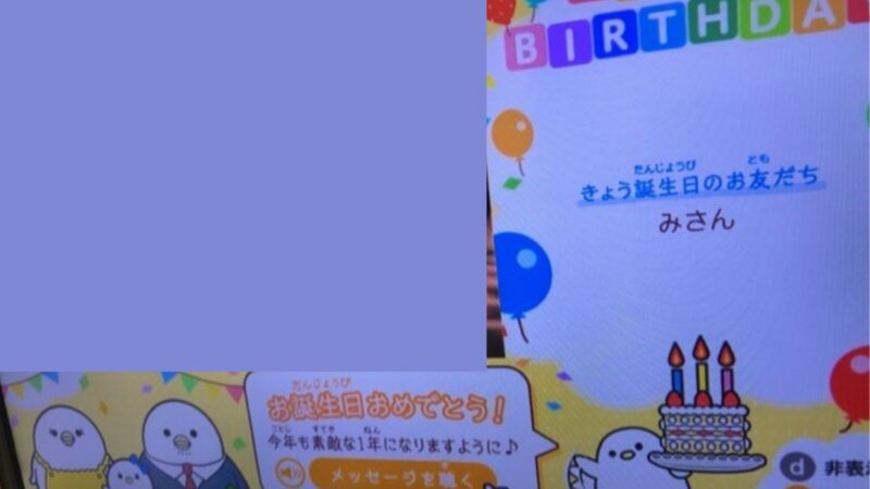 誕生日を登録していると、誕生日当日はシマエナガちゃんがおめでとう!って言ってくれました。